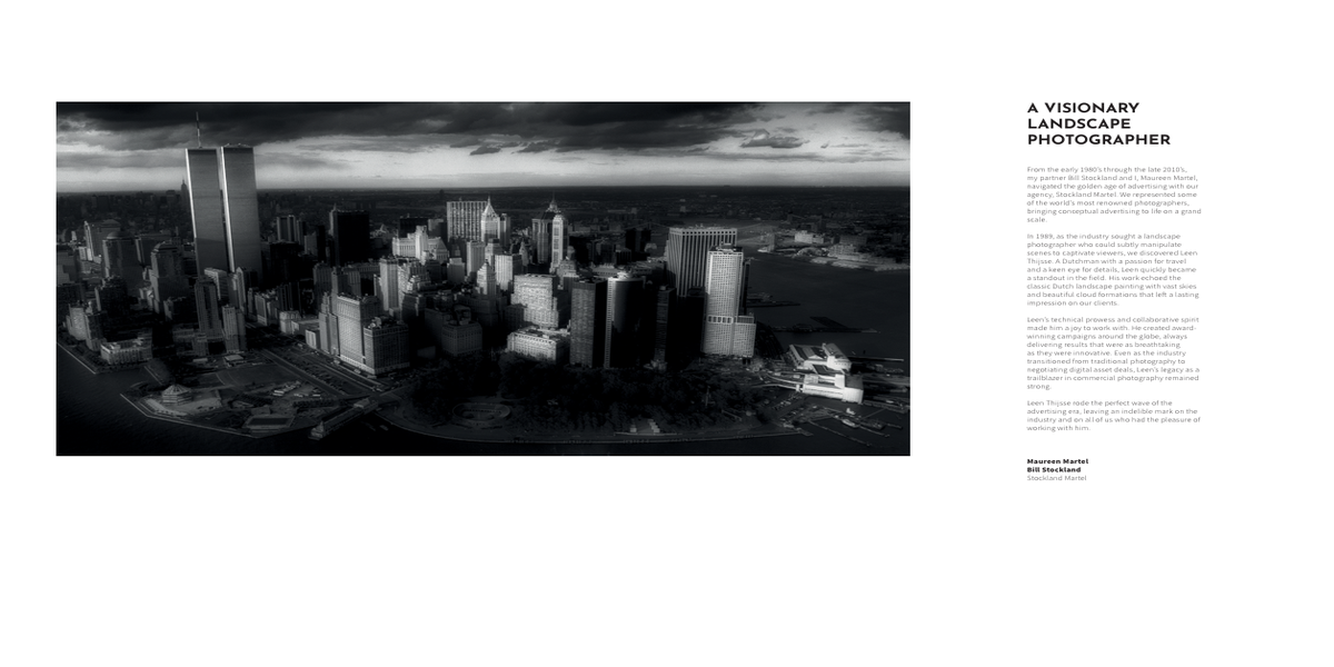 In this book, Leen Thijsse (1959) presents a vast collection of his award-winning commercial campaigns, impressive landscape photography and free and intuitive work. More than a visual chronicle of his thirty year career, ZEST is a time capsule, a window into different worlds and a dialogue between the past and the present.